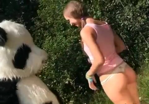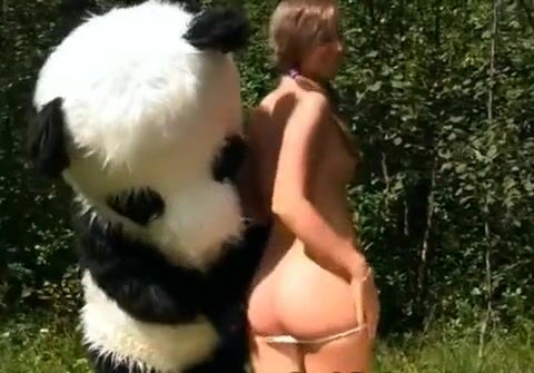 «Связанная русская девушка в лесу вынуждена заняться сексом с парнем в костюме панды. Стройная цыпочка может удовлетворить его извращенные фантазии и делает это. Проказница с маленькими сиськами принимается сперва отсасывать большой искусственный член, после чего отдается в бритую пизду и получает удовольствие. Всё происходящее нравится этой цыпочке, она постанывает и кайфует, а уже вскоре получает сперму на лицо.»
