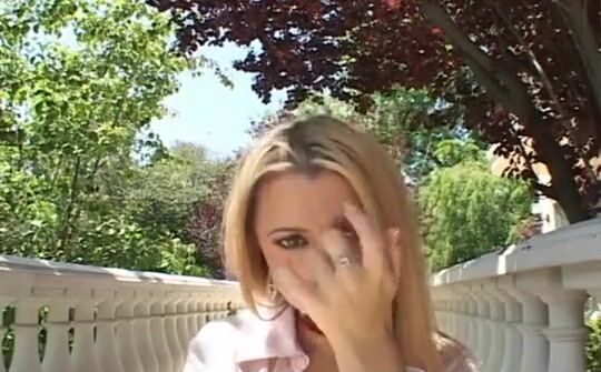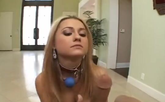 «Красотка в чулках безумно хочет, чтобы властный кавалер над ней доминировал во время жесткого секса. Чтобы намекнуть на свои желания, белокурая худышка засунула себе в рот кляп и стала ждать самца возле его дома, перед дверью. Мужик, увидев такое, изрядно возбудился и завел цыпочку в дом, чтобы поиметь её как следует. Жаркая девчонка сделала глубокий минет и отдалась в пизду, наслаждаясь жаркой еблей.»