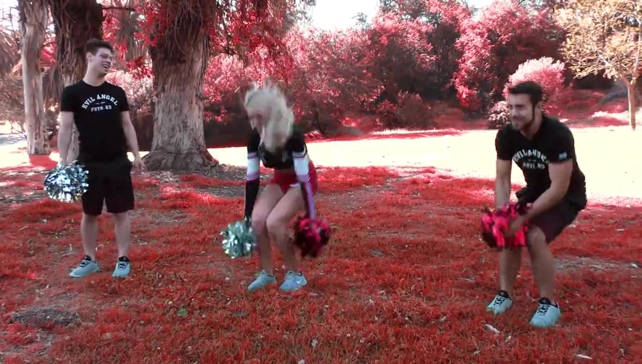 «Сексуальный транс в образе чарлидерши занимался на тренировке с двумя друзьями гомосексуалистами. Вскоре светловолосой сучке захотелось чего-то больше, и как только он вывалил из трусиков пенис, увидевшие фаллос гомосеки набросились на него губами. После того как каждый из них показал на что способен глубоким минетом, они с явным удовольствием на лице занялись долгим анальным сексом, в завершении которого страстно оттраханная с двух сторон малышка получила в рот два вкусных камшота, с жадностью проглатывая каждую каплю заслуженной спермы.»