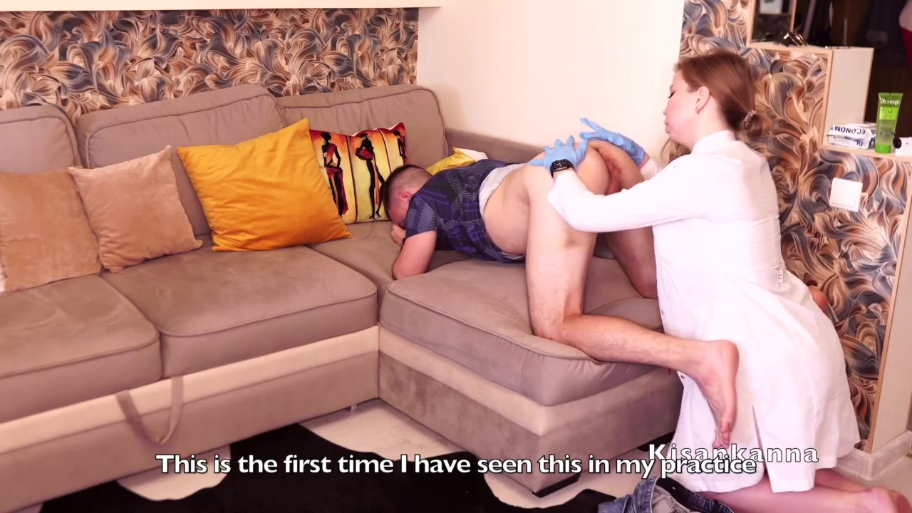 «Обворожительная русская медсестра придя к пациенту домой, начала проводить обследование его анального отверстия, нежно массируя пальцем простату. От полученного удовольствия богатырский пенис жеребца стал твердым как камень, перед которым малышка не смогла устоять и тут же запрыгнула на него сверху, доставляя счастливчику ни с чем не сравнимый кайф узенькой дырочкой. Жопастая бестия не слазила с члена довольно долго, чем заслужила в финале большую порцию спермы, с жадностью высасывая из счастливчика каждую каплю.»