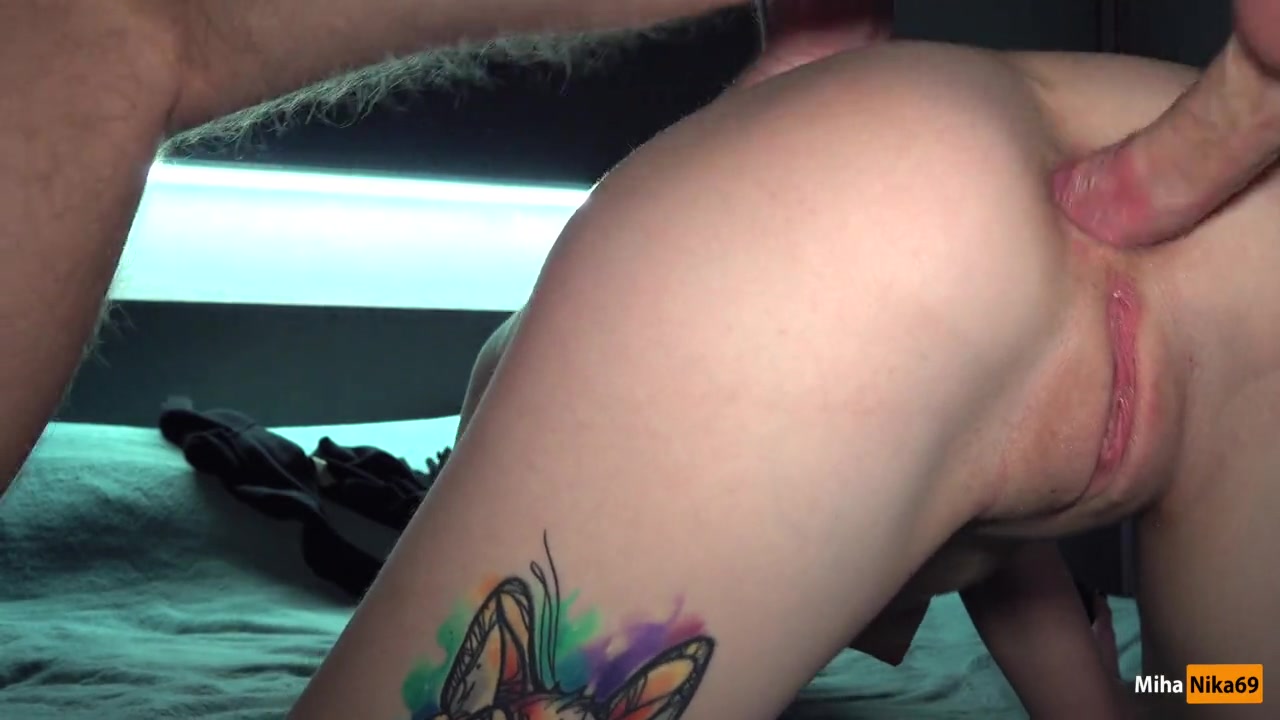 Парень ебет в жопу молодую русскую девку и снимает на камеру