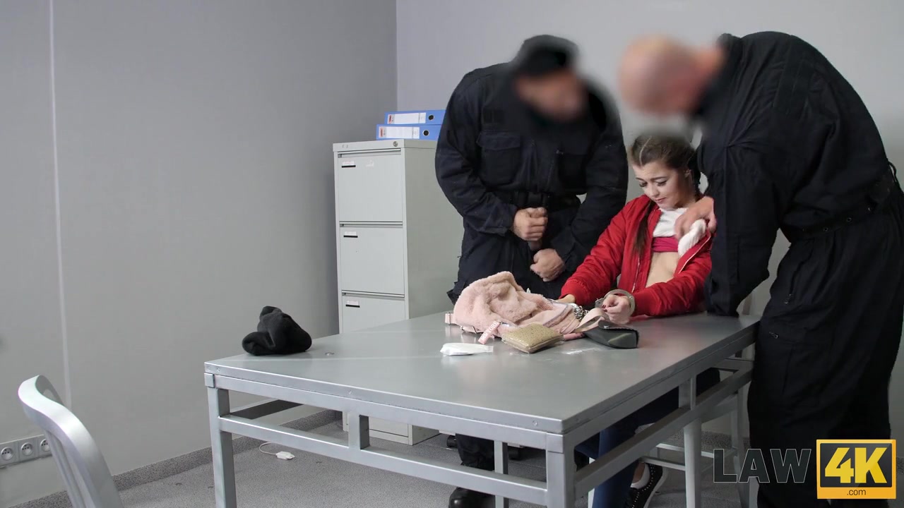 «Атлетически сложенный правоохранители задержали на улице очень привлекательную молодую девушку, которую сразу привезли в отделение и посадили в клетку. Няшная куколка сразу поняла как сможет избежать дальнейшего наказания, начав всячески соблазняться находящихся рядом мужчин. Мускулистые кобели не смогли устоять перед очарованием миниатюрной малышки, и как только она склонилась на коленки с открытым ротиком, они дружно трахнули ее в глотку. После прелюдии мужики ответили телочку в комнату допросов, где прямо на столе отжарили бестию с двух сторон мощными членами.»