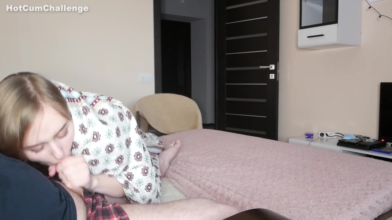 Няшная блондинка строчит минет брату за спиной полуголой мамы