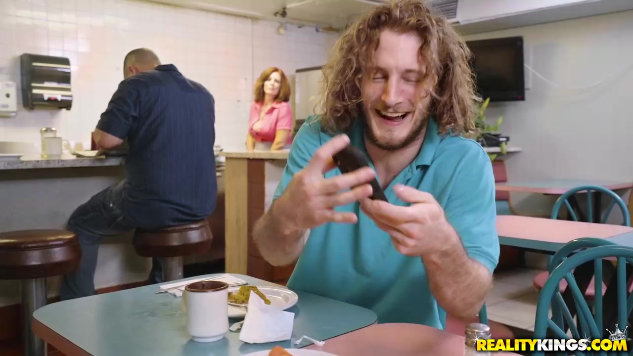 «Зрелая но все еще нереально сексуальная официантка обслуживая симпатичного молодого клиента обратила внимание что хахаль всячески пытается с ней заигрывать. Несмотря на рабочее время опытная львица обнажила роскошные натуральные сиськи и на опыте показала как приятно она умеет работать губками, доставив кучерявому партнеру самое мощное оральное удовольствие в его жизни. После прелюдии похотливая женщина наклонилась раком для максимально глубокого проникновения сзади, с наслаждением ощущая как страстный мускулистый самец из за всех сил ее дрючит большим размером детородного органа.»