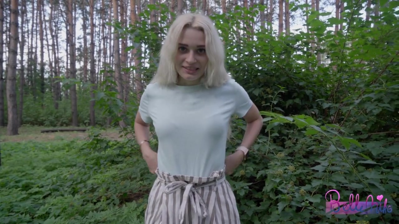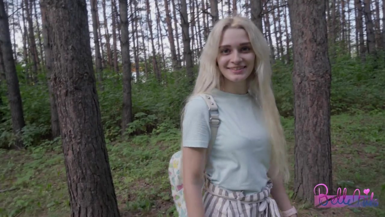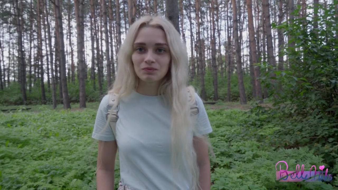 «Русский ловелас прогуливаясь в лесу с видеокамерой в руках обратил внимание на очень привлекательную молодую блондинку, к которой сразу подошел с интересным предложением, в котором красавица прилично заработает деньжат и очень приятно проведет время. Перед таким соблазном белокурая куколка не смогла отказаться и как только они уединились в лесной чаще, девчонка получила нужную сумму и с гордостью продемонстрировала порно агенту свое шикарное тело, глядя на которое его болт моментально увеличился в размере. Затем за дополнительную плату сучка по полной отработала пиздой каждый полученный доллар, полностью оправдывая ожидания кобеля фантастическим сексом на улице.»