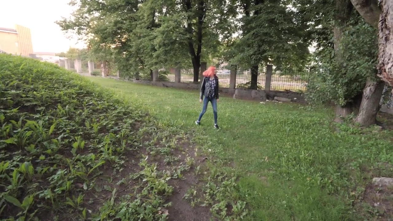 «Рыжеволосая нимфа обожает секс в публичном месте и как только самец вышел с ней прогуляться на улицу, малышка сразу попросила его включить видеокамеру и дать ей возможность показать от первого лица на сколько она хорошо работает с членом. Перед таким соблазном парнишка не устоял, и как только его фаллос выскочил и штанов, похотливая краля обнажила натуральные сиськи и упала на корточки исполнить очень глубокий минет. В след за прелюдией молодая куколка наклонилась перед партнером раком, с удовольствием ощущая как неугомонный пихарь наращивает ритм их жаркой ебли на свежем воздухе.»