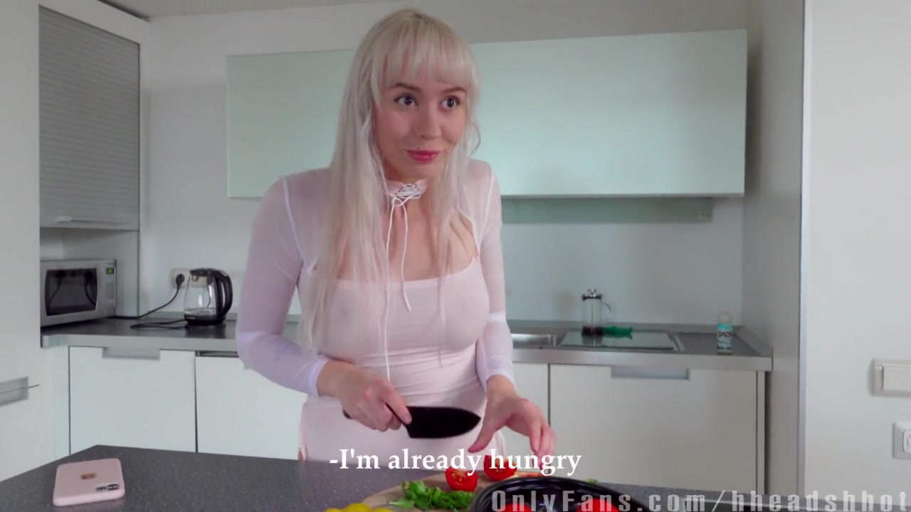 «Сексапильная блондиночка с отменным телосложением готовила для любимого завтрак, во время чего он решил ее отвлечь и немного пошалить со своим поднявшимся болтом. Любвеобильная крала не смогла отказаться от приятного времяпровождения и прямо на кухне стала на коленки и засосала пенис так глубоко на сколько это возможно. Насладившись бездонной девичьей глоткой страстный чувак закинул подругу на ствол сверху и по полной программе отодрал, снимая процесс от первого лица крупным планом до полного обоюдного удовлетворения.»
