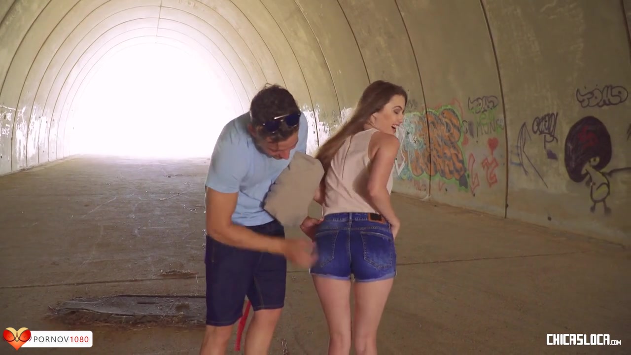 Пошлая студентка ебется в туннеле и ей плевать, что там ходят люди