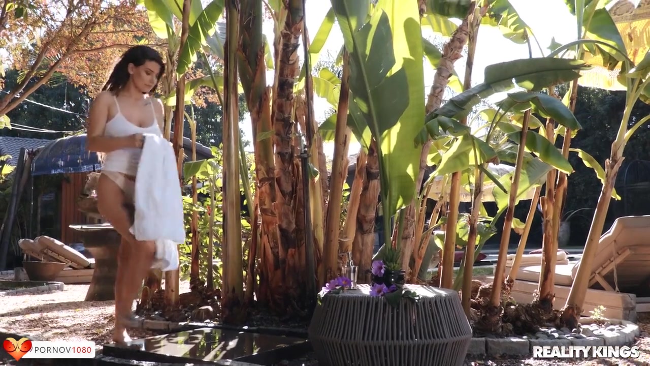 «Нереально красивая девушка с шикарными большими сиськами, начала принимать душ на улице совсем не догадываясь что за ней пристально смотрит сосед. Вскоре темноволосая краля заметила тайного поклонника, и так как он как раз в ее вкусе малышка кивнула ему подойти. Мускулистый пихарь не стал медлить и ринулся ее ублажать, одаривая куколку возбуждающими поцелуями по всему телу. Как только соседская красотка увидела что соседский мужик созрел к продолжению, она стала возле него на коленки и осуществила лучший сиськотрах в его жизни, после которого дала ему войти во внутрь мокрого влагалища.»