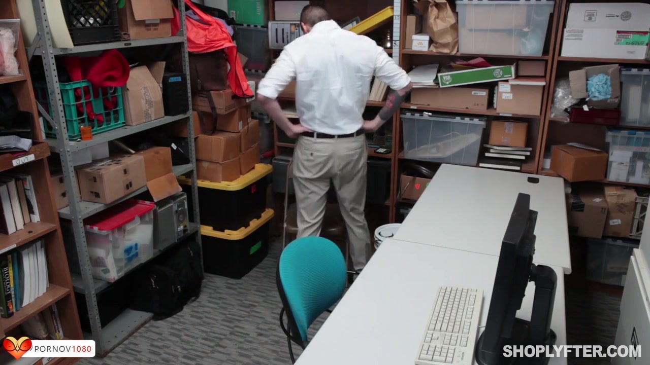 «Белокурая девка попалась на воровстве в магазине, поэтому теперь находится на складе с охранником. Мужик сперва угрожает миловидной блондинке, а потом предлагает компромисс - он не будет вызывать полицию, если телка с ним займется сексом. Худышке приходится согласиться, она нехотя отсасывает член и отдается в пизду на столе. Уже вскоре цыпочка даже начинает получать удовольствие от этого полового акта.»