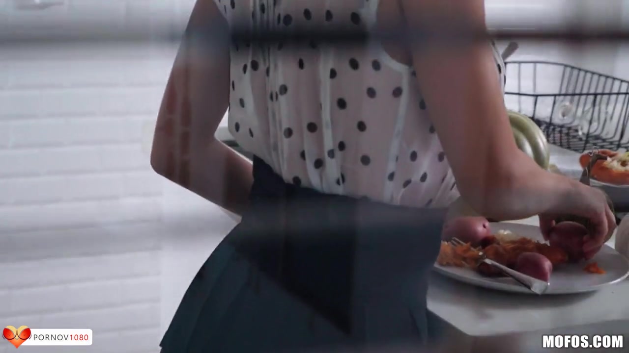 «Черноволосая милфа с силиконовыми сиськами испачкала рубашку и лифчик во время готовки, поэтому она решила лучше раздеться и продолжить готовить уже только в халатике на голе тело. Сосед как раз в этот момент зашел в гости к привлекательной бестии. Брюнетка угостила его пирогом из духовки, а так же своей киской и ротиком. Жаркая развратница стала смачно сосать крепкий фаллос и отдалась в бритую пизденку.»
