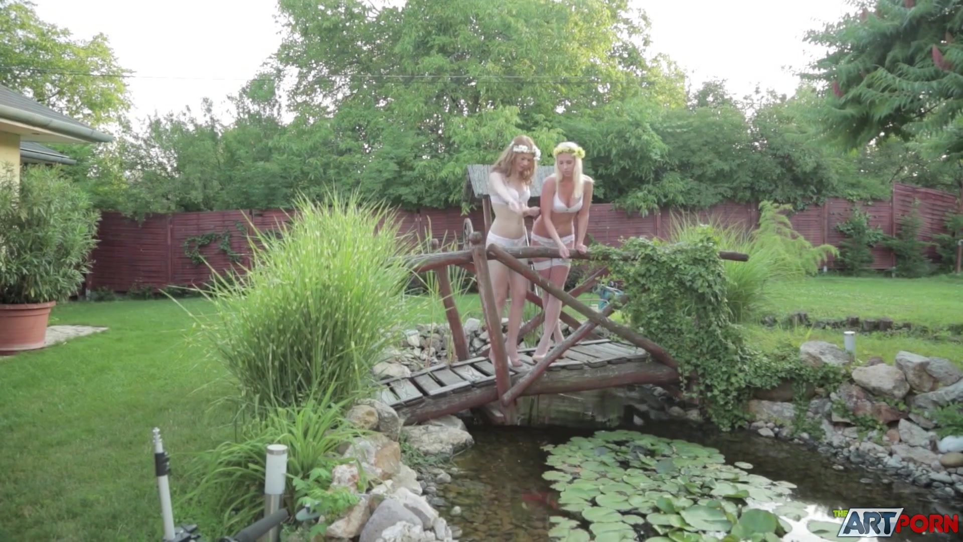 «Нежные подружки сперва плетут венки во дворе и кормят рыбок в пруду, а потом эти привлекательные худышки решают заняться более интересными делами. Их тянет на разврат и миленькие цыпочки принимаются целоваться и раздеваться, лаская друг дружку. Далее к ним присоединяется парень, который берется ублажать девчонок своим членом. Он наслаждается как минетом от худышек, так и их влажными, бритыми пизденками.»