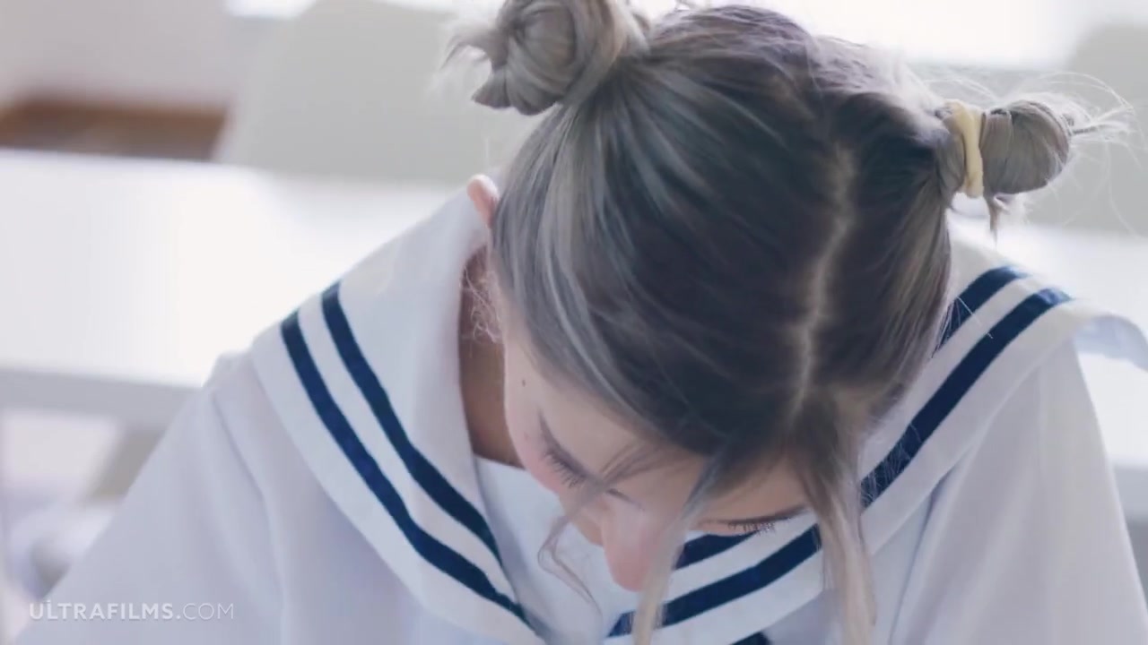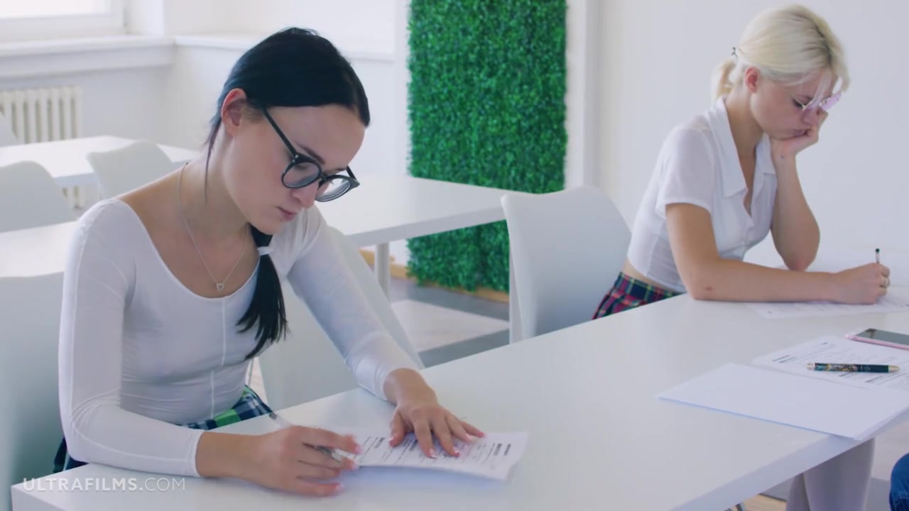 «Привлекательная русская студентка прибежав на экзамен сразу поняла что отметка у нее будет ни самая лучшая. Поняв как выйти из сложившейся ситуации белокурая бестия задействовала все свое очарование, начав заигрывать с молодым преподавателем. Несмотря на работу ловелас повелся на искушение, вывалив у ее милой мордашки фаллос, за который красавица нежно присосалась рабочими губками. Далее жеребец с явным удовольствием на лице опробовал узость влагалища молодой девицы, присовывая сучку по полной программе.»