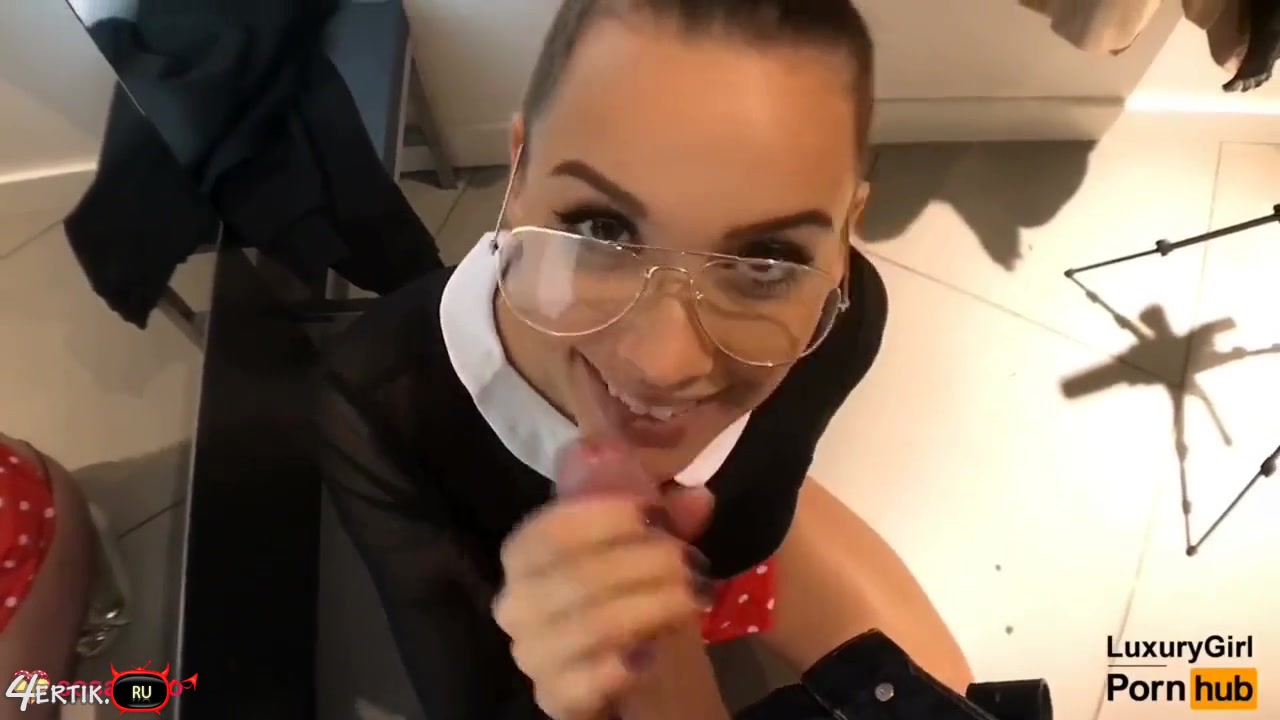 «Русская телка потянула парня по магазинам, но его труд был отблагодарен. Привлекательная цыпочка в очках предложила ему уединиться в примерочной одного магазина, желая там заняться сексом. Жаркая бестия принялась смачно сосать, а затем встала раком и отдалась в мокрую киску. Развратница даже видео сняла с еблей в таком месте. Закончилось всё тем, что её умелый ротик наполнился горячей спермой бойфренда.»