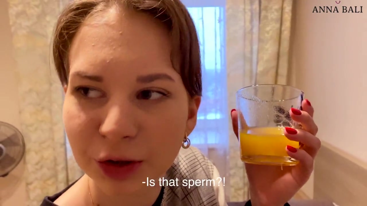«Русский пацан фапнув на любимое порно решил кончить в стакан с соком. Чувак совсем не догадывался что вскоре в комнату зайдет его подружка и хлебнет освежающего напитка. Малышка сразу поняла что испила сперму, и ей сильно захотелось добавки. Отказать девушке в таком специфическом лакомстве самец не смог, что спровоцировало его вынуть из штанов пенис и медленно присунуть ей в ротик. Знающая что нужно делать сучка умело прошлась губками по всей длине детородного органа, после чего позволила счастливчику опробовать узость пизды.»