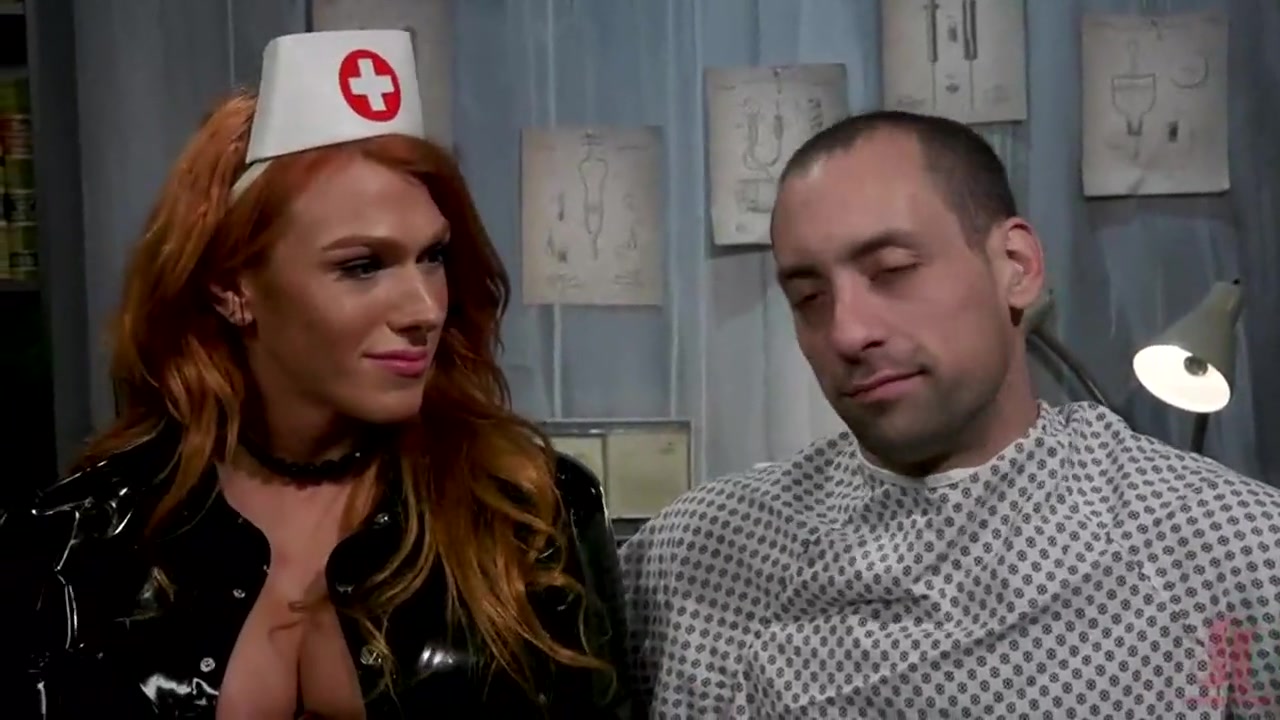Транс в униформе медсестры пялит в анал пошлого пациента