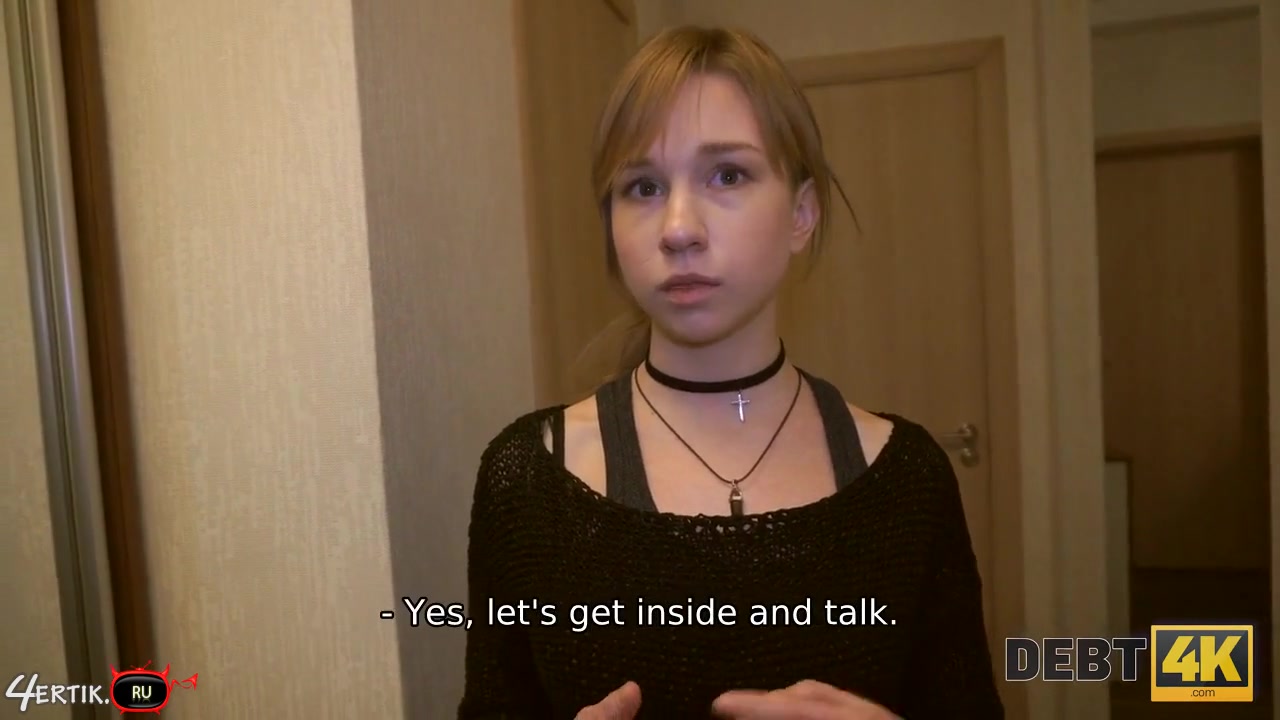 «Русский парень работая коллектором решил жестко выбить долги с красивой молодой красавицы, которую застал врасплох на на пороге квартиры. После непродолжительной беседы самец сделал ей заманчивое предложение, а точнее отдать долг занявшись с ним сексом. Няшная бестия не стала отказываться и как только он взял ее за волосы, малышка открыла ротик и принялась на опыте сосать член. Полностью удовлетворив счастливчика оральными ласками, малышка скинула с себя олежду и сразу запрыгнула на хуй сверху, давая ему познать все прелести узенького влагалища.»