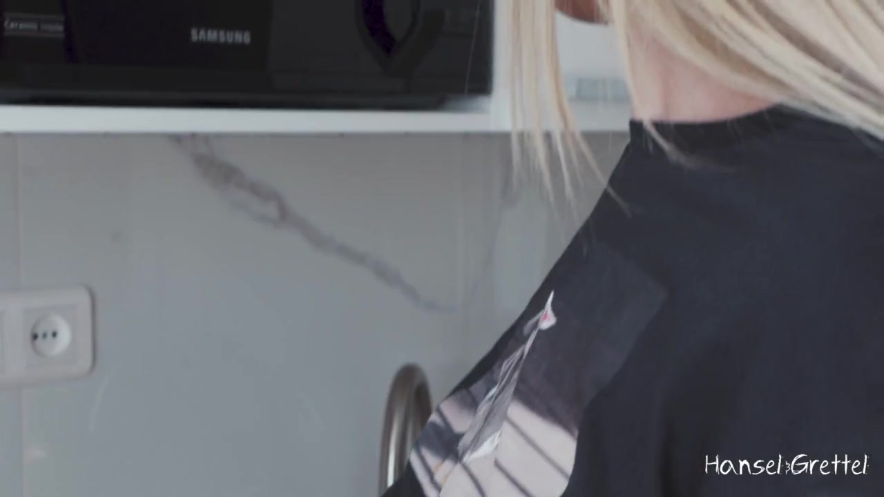«Сексапильная блондиночка с идеальной стройной фигурой попалась на кухне к жаждущему любви парню, который сразу стал раскручивать бестию на секс. Любвеобильная малышка не стала разочаровывать бойфренда и послушно упав на коленки застрочила ему максимально приятный минет, доставляя счастливчику немыслимый оральный кайф. После прелюдии настало время и опробовать узость девичьей киски, которую он сперва стал страстно мастурбировать от чего бестия не слабо сквиртанула. После чувак запихнул грудастой сучке промеж ножек, получая в ответ сладкие уху женские стоны.»