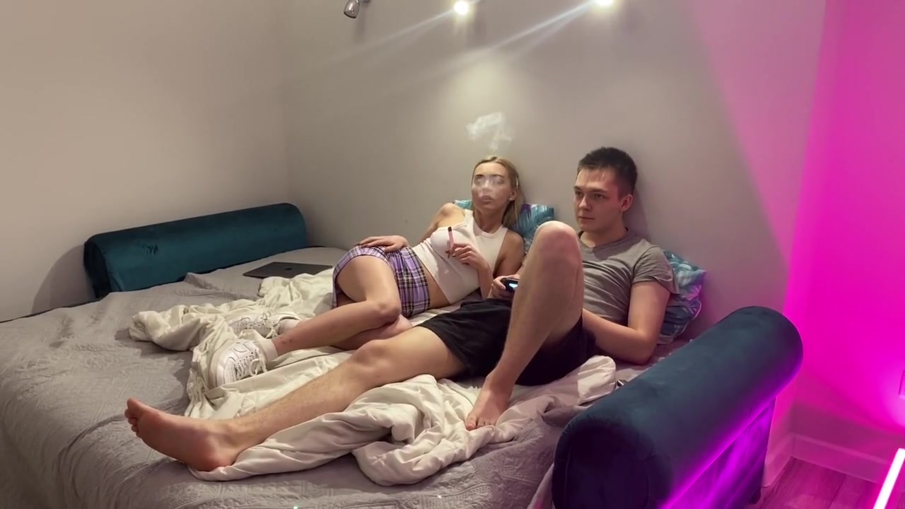 «Симпатичная русская девушка начала ласкать ручкой в области детородного органа парня, который естественно от ее прикосновений стал большим и твердым. Ловелас сразу понял какое удовольствие его ждет впереди и после сказочного исполнения орального секса чувак закинул подругу на себя сверху и плавно набирая ритм стал ее драть по полной программе. Любвеобильная сучка задействовав весь опыт подключила счастливчика и после того как он достаточно сильно возбудился дала оприходовать промеж ножек, получив в финале заслуженный выброс спермы прямо в ротик.»