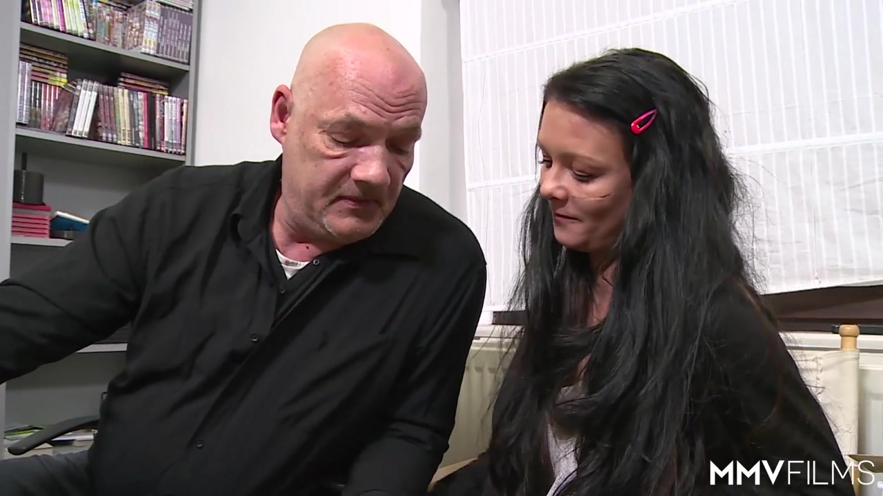 «Старых хрычь узрев какая молодая цыпочка зашла в его кабинет устраиваться на работу, сразу стал осматривать ее документы. Поняв что у телочки нет нужных бумажек он сделал ей заманчивое предложение, дав ей возможность обойтись без них, а для этого поработать телом. Темноволосая молодуха не стала отказываться от заманчивой вакансии и не долго думая присосалась к члену старика, показывая на сколько она классно берет за щеку. Далее зрелый хахаль решил опробовать узость ее пизды, которой полностью остался доволен и в финале кончил так сильно, удивив бестию таким количеством спермы.»
