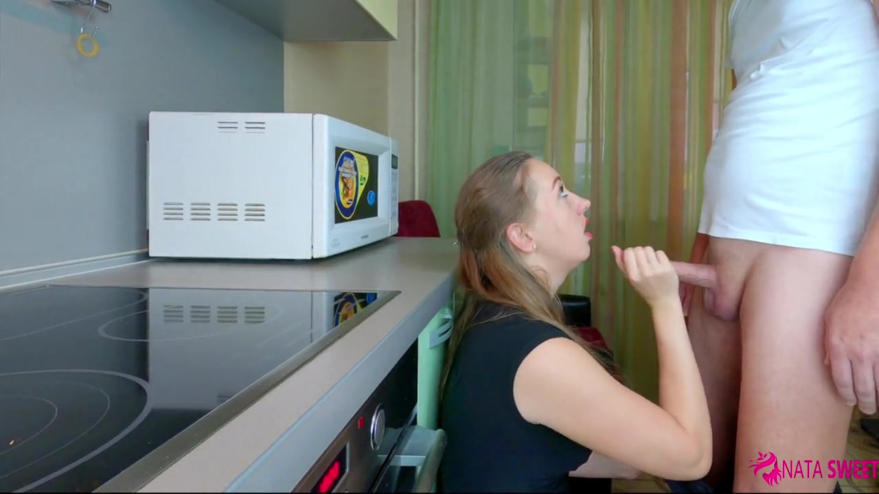 Отодрал на кухне русскую нимфу и наполнил ей ротик спермой