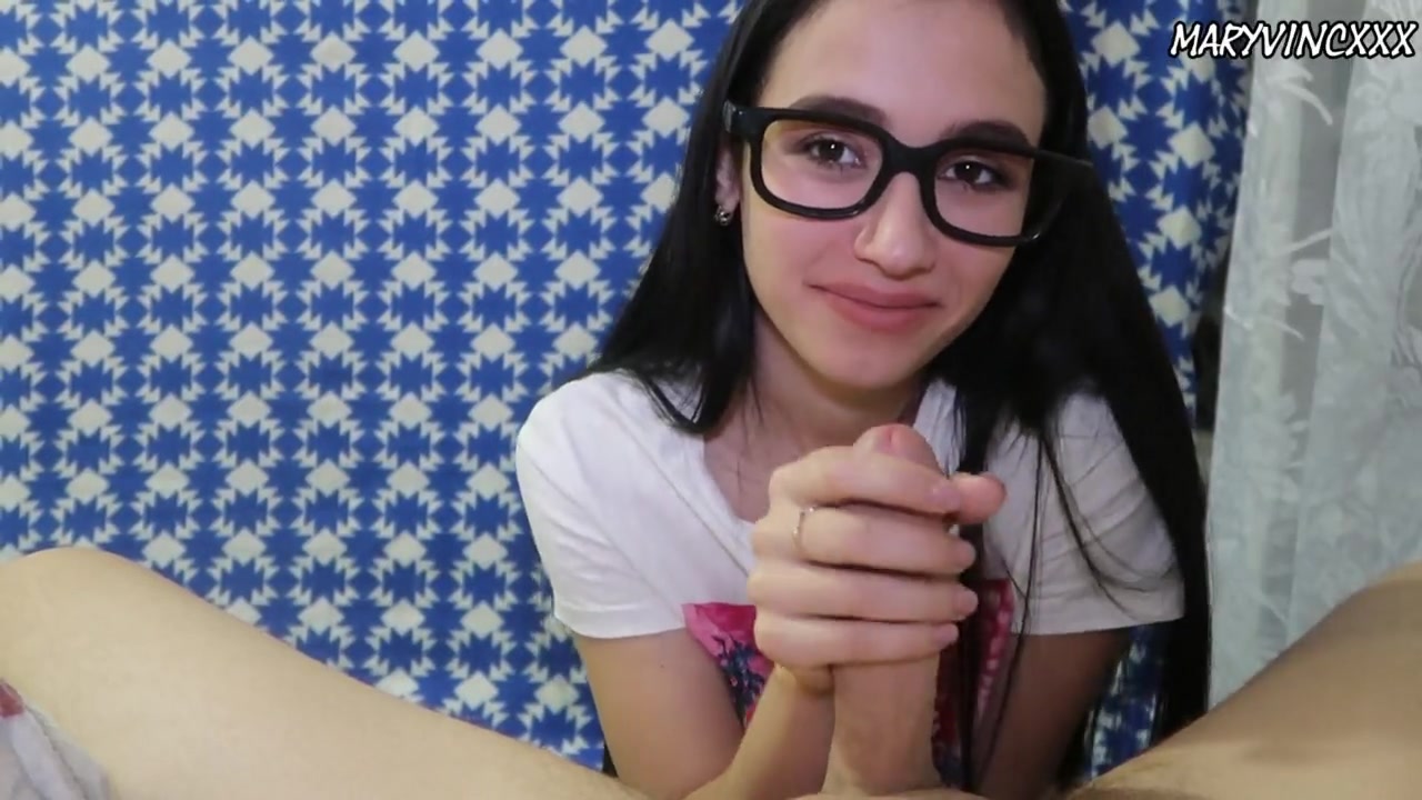 «Очкастая брюнетка сидела себе и ковырялась в телефоне, вообщем задорно проводила свое бытовое время. Но спустя некоторое время, к ней подкатил ее парень и начал требовать порцию секса. Ей ничего не оставалось кроме как согласится и они приступили. Началось все с мокрых поцелуев, продолжилось длительным минетом, ну а закончилось тем, что он как следует отымел миниатюрную брюнетку с маленькими сиськами. Ну а напоследок, чтобы показать ей как он сильно ее любит, кончил ей в рот.»