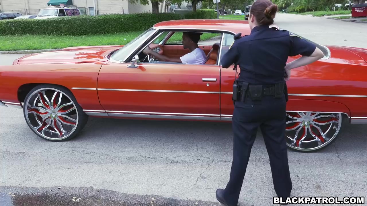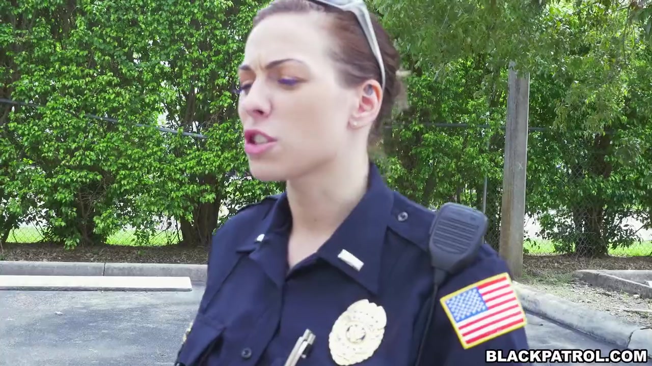 «Две девушки работая в полиции патрулировали улицы города и обнаружили подозрительную машину, которую решили остановить. На этот раз им улыбнулась удача и их чутье не подвило, так как там сидел чернокожий преступник, который выбежал из машины и стал от них удирать. У него убежать не вышло но подарком судьбы ему стал тот шанс который позволит избежать наказания, так как сучки предложили ему искупить вину своим большим болтом. Такому повороту событий бандит только обрадовался, начав драть девушек копов так горячо как только можно.»