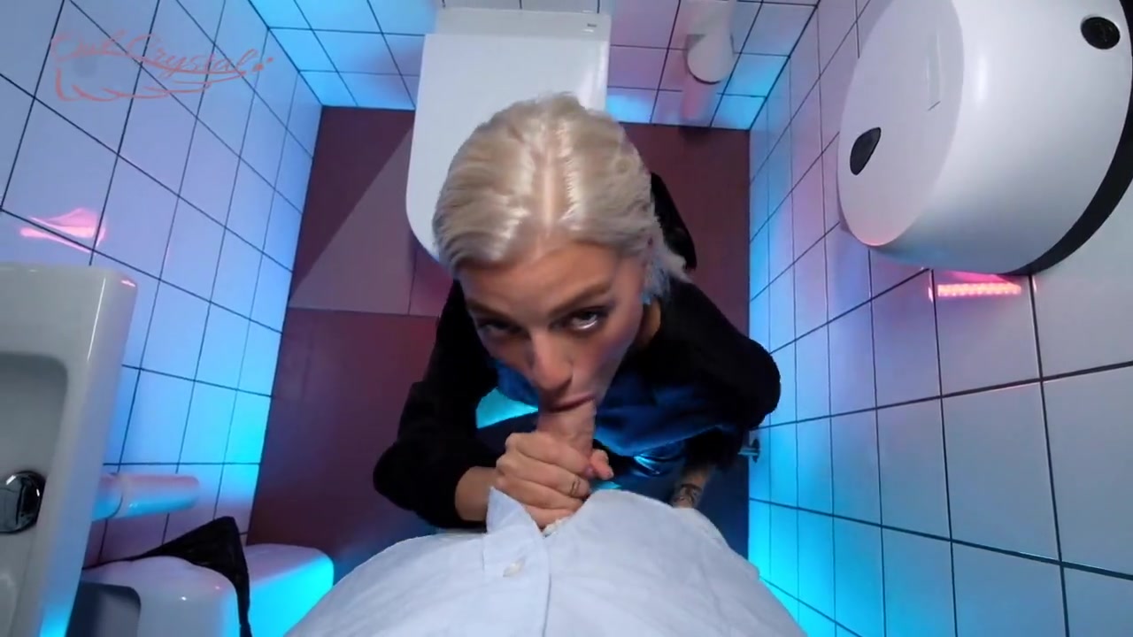 Горячая барменша отсасывает мужику в туалете ради вкусного камшота