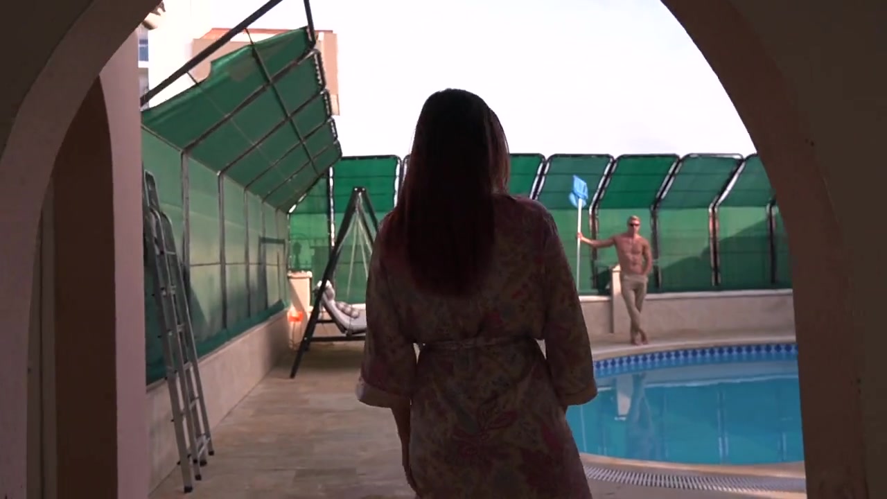 Нимфочка глубоко сосет мускулистому чистильщику бассейна и получает кайф