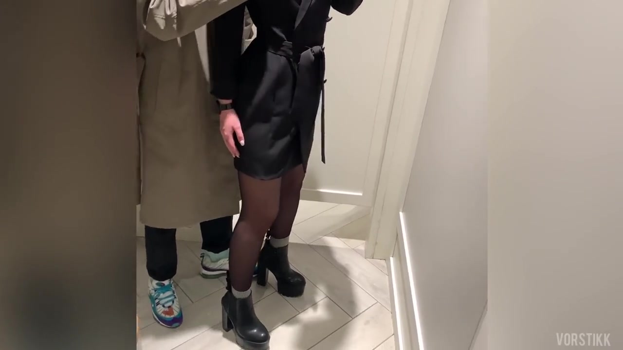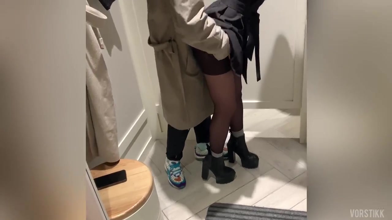 Прямо в примерочной чувак в пальто пялит раком знойную девчонку