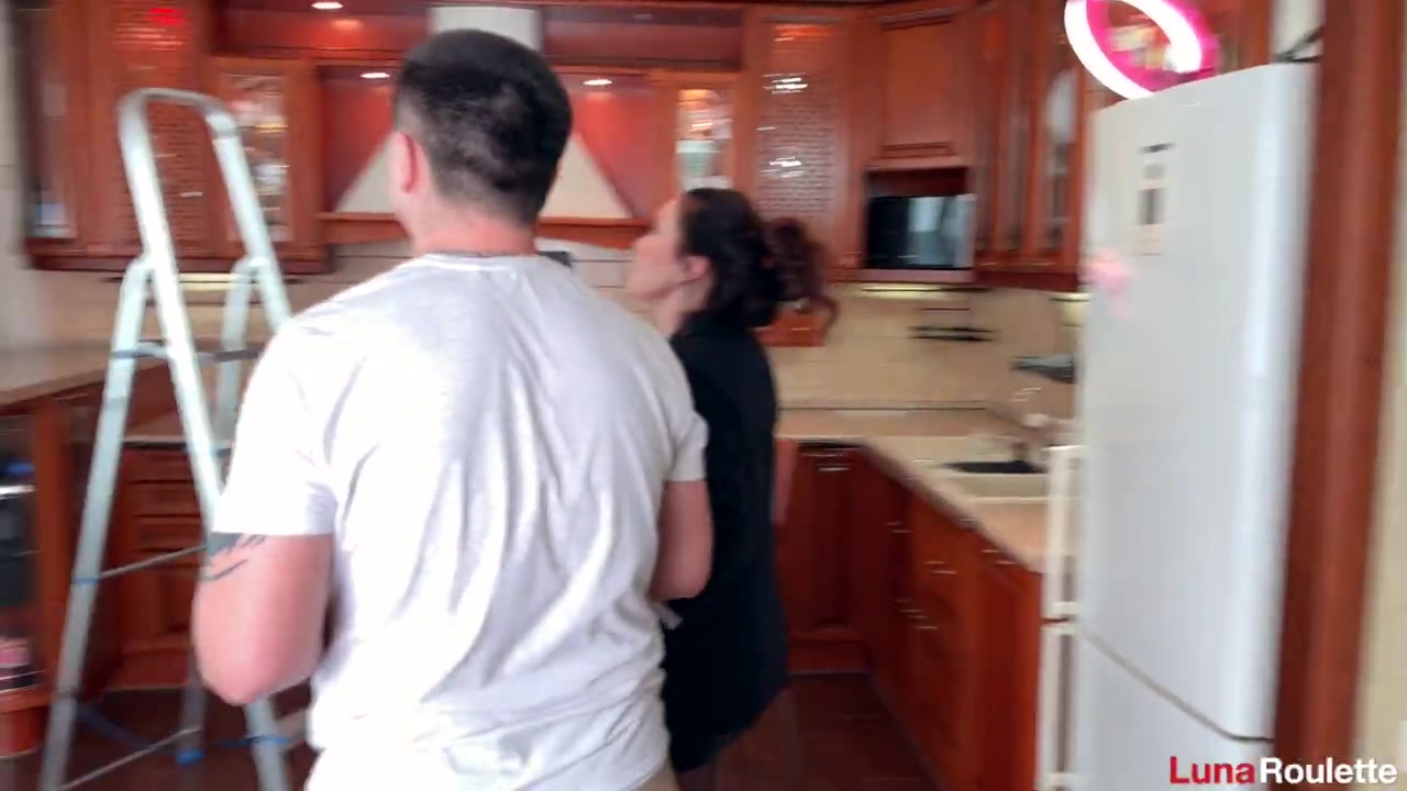 «Симпатичная и очень страстная брюнетка начала приставать к парню который вешал ей люстру. Ловелас не стал останавливаться знойную телочку и с радостью на мордашке стал смотреть с высока как она растягивает ширинку и нежно берет губками его фаллос, который прямо у нее во рту максимально увеличился в размере. Затем малышка остановив на себе лишь чулки попросила кавалера сесть на стул, а сама оседлала его сверху, устроив на нем сверху ни с чем не сравнимое родео, от которого хахаль испытал судорожный оргазм.»