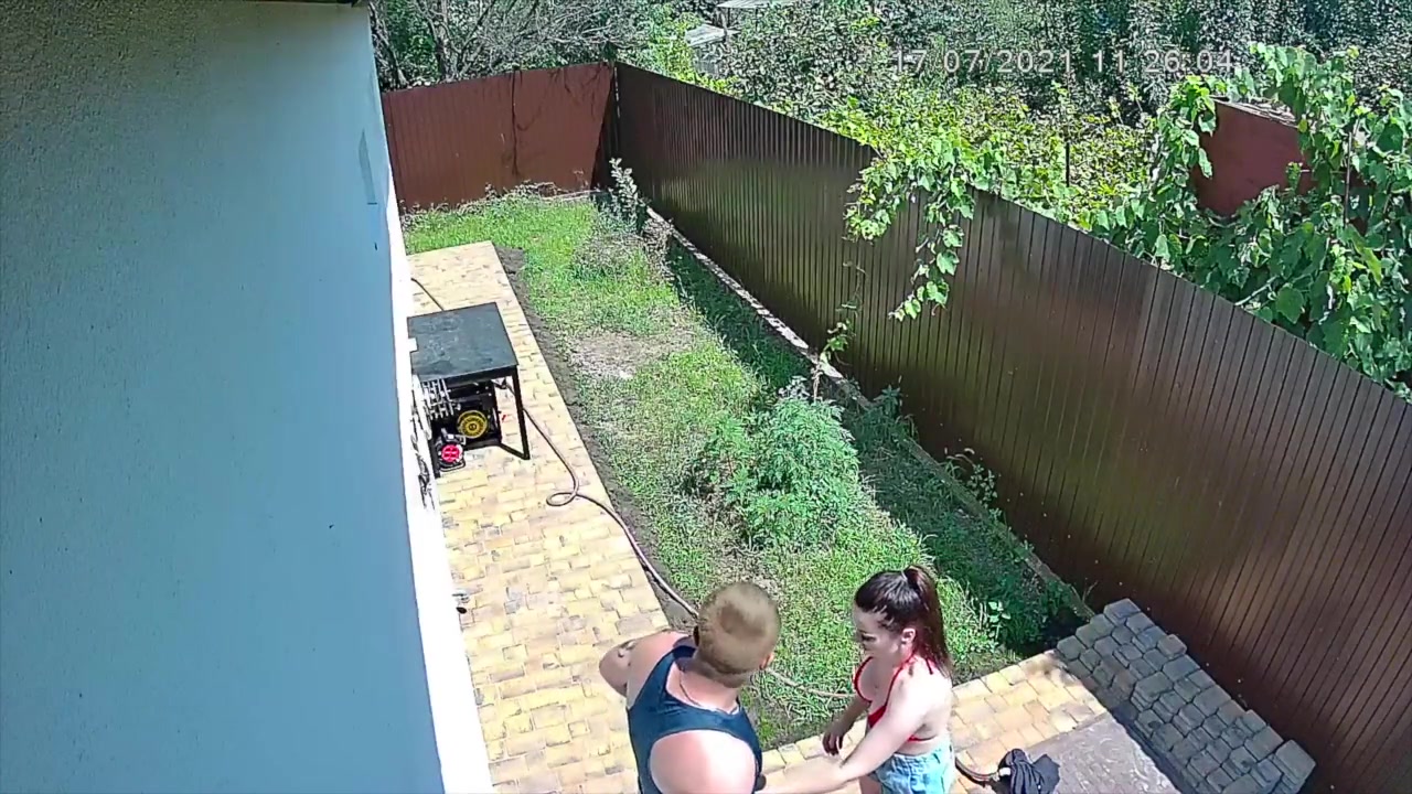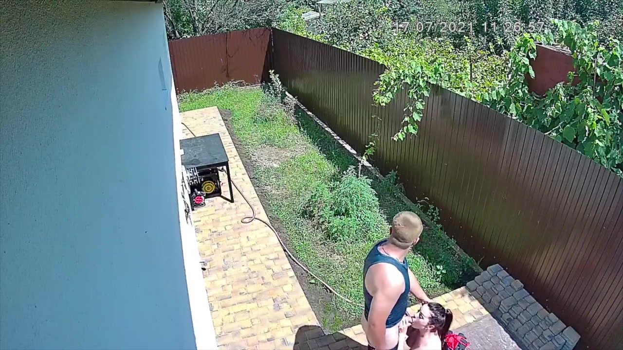 Вернувшийся супруг увидел как его жена сосет хуй на заднем дворе
