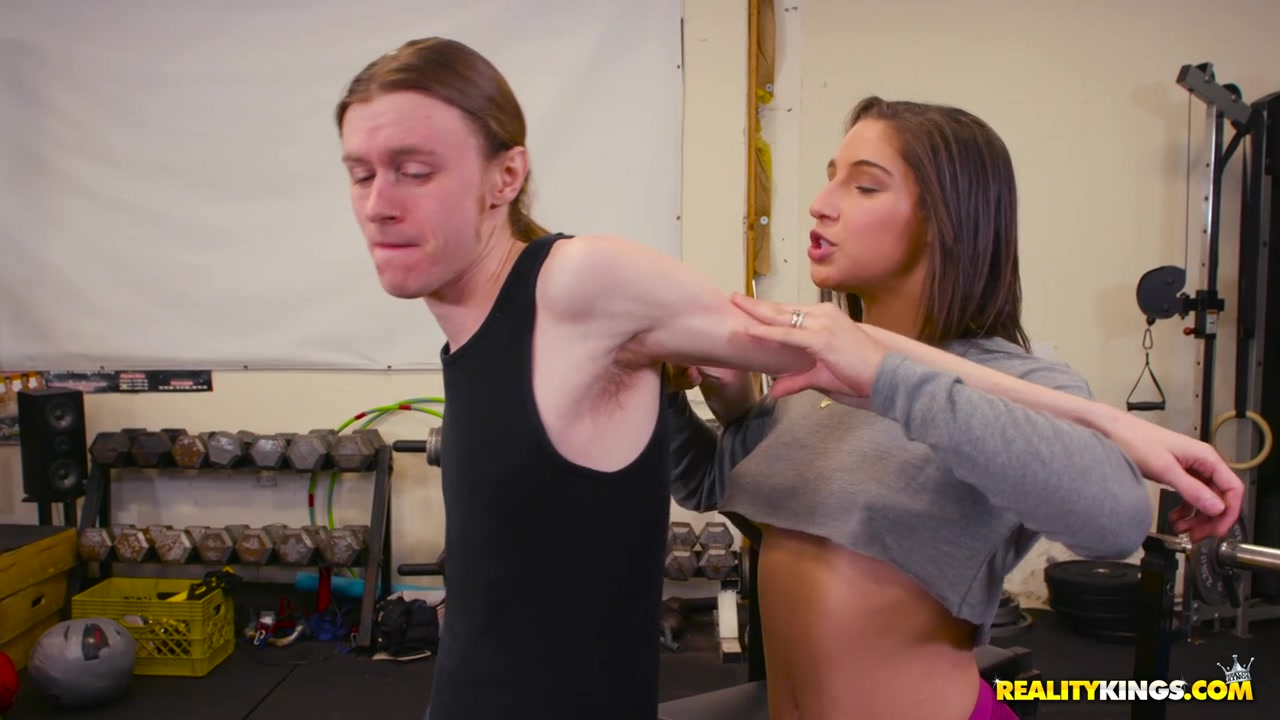 «Худой пацан решил взяться за спорт и пришел в тренажерный зал. Его встретила нереально красивая девушка инструктор, которая согласилась привести дрыща в форму. Во время тренировки малышка обратила внимание выпирающий из трусов член, и неожиданно для нее ей сильно захотелось ему отдаться прямо в зале. Несмотря на то что хахаль совсем не в ее вкусе, красавица стянула с него шорты и начала сосать, удивляя счастливчика улетным оральным сексом с качественно исполненным сиськотрахом. Далее хахаль почувствовав себя мачо растопырил бестии ножки и с легкостью обеспечил ее судорожного оргазма.»