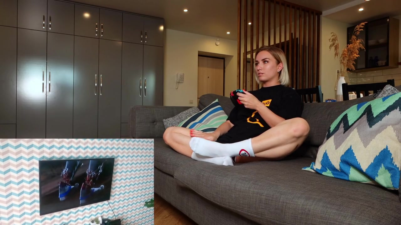 «Милашка блондинка настоящая геймерша, готовая сутками залипать в свою приставку. Но помимо игр эта малышка обожает и сексуальные шалости. Порой красотке приходится объединять два занятия сразу, ведь что сложно держать в руках джойстик, а ротиком активно сосать. Но минет завлекает шалунья, потому она оголяет свои обвисшие сиськи и усаживает бойфренда на диван. Теперь его очередь играть, а она будет сочно сосать, облизывая даже яйца. Это было нежно и очень мокро, именно потому чувак накончал подружке солидно в рот.»