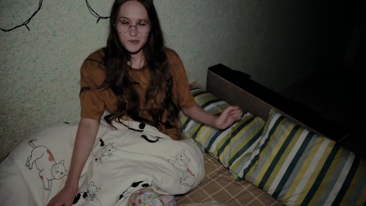 «Красивая русская телочка в очках уже в постели и укладывается спать, но ее бойфренд имеет некие пошлые планы. Немного полежав с милашкой, он предложил ей отсосать, ведь длинный жилистый член уже на взводе и надо лишь взять его в ротик. Для большего возбуждения молодая девушка даже разделась и принялась активно работать от первого лица. Сочный минет становится все быстрее, но в один момент крошка остановилась, ведь ей кончили в ротик не вынимая, испачкав все спермой.»