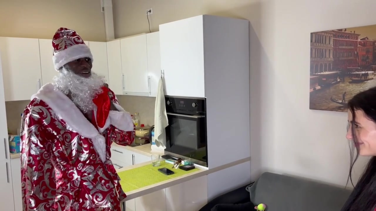 Чернокожий Санта пришел отжарить русскую девушку огромным стояком в качестве подарка