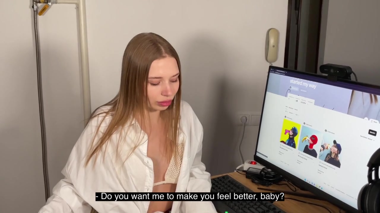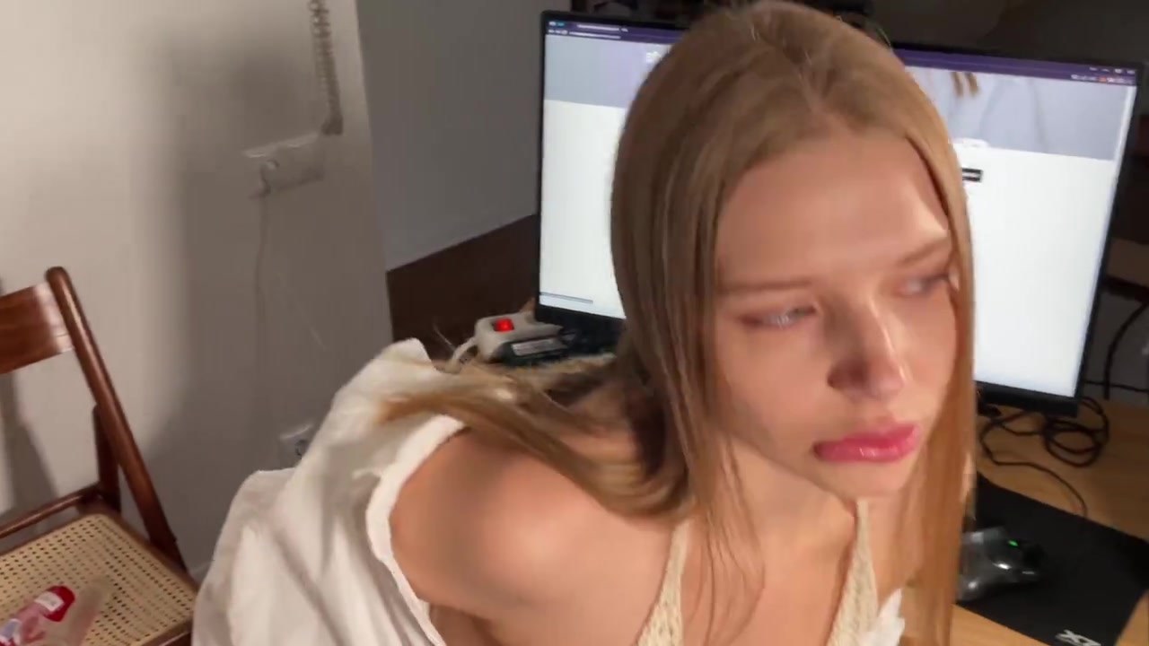 «Блондинка с аппетитными силиконовыми губами и брекетами прям сходит с ума от желания потрахаться, но, при этом, не говорит об этом. Парень же настойчиво возбуждает красотку и девушка быстро возбуждается. Она берет большой хуй в рот и сладко сосет его, затем раздвигая ножки и впуская перевозбужденный елдак прямо в щелку, где он быстро получает свой первый оргазм, заливая спермой лобок красотки, а после второго раунда кончая своей сучке на мордашку.»