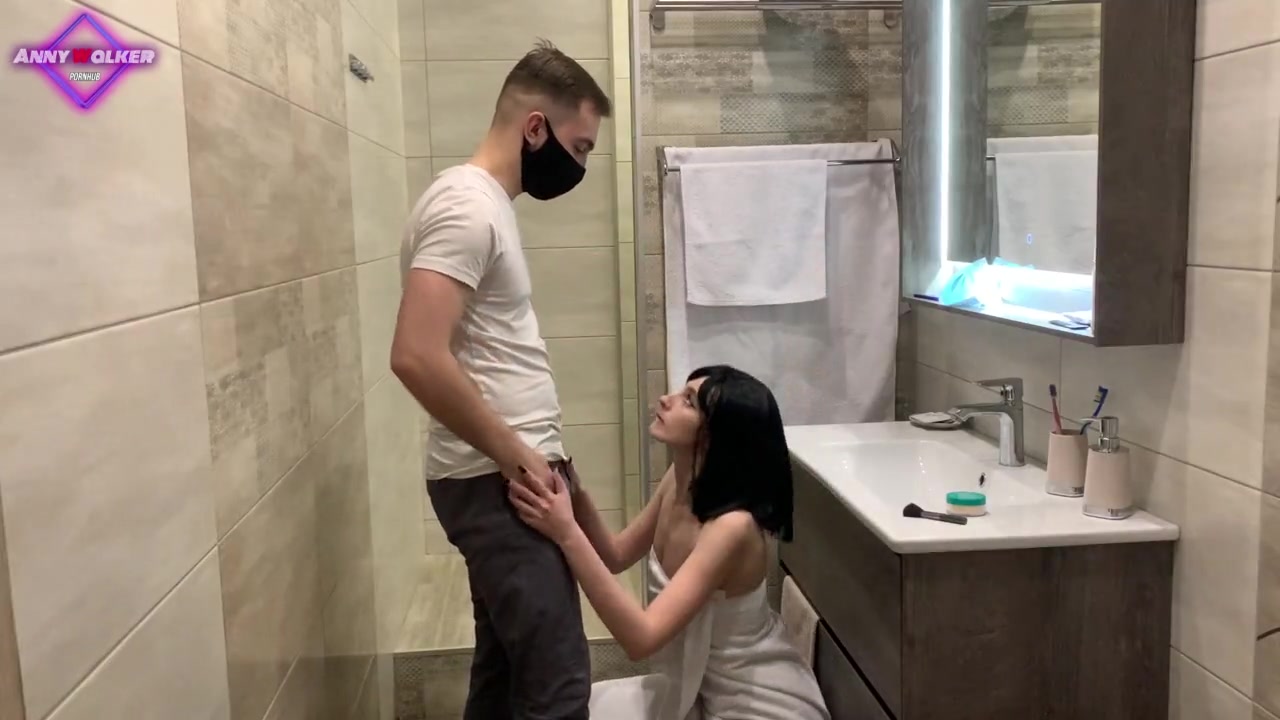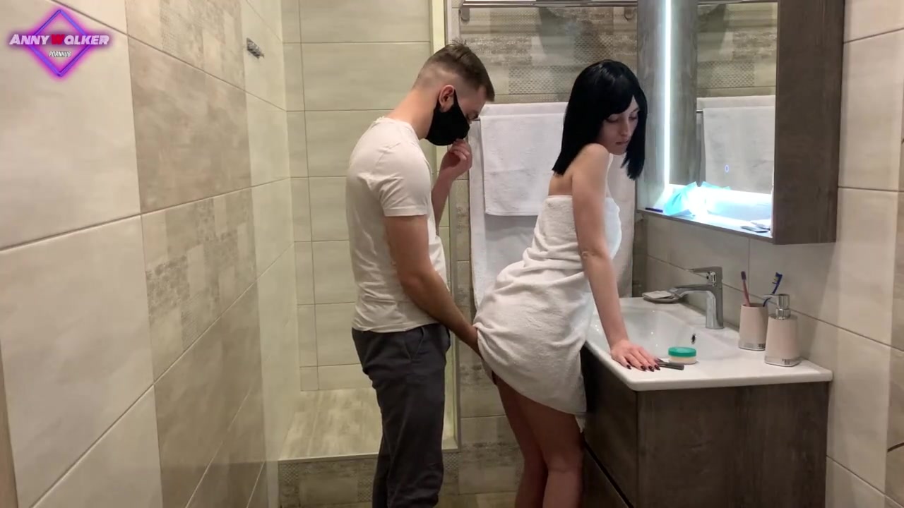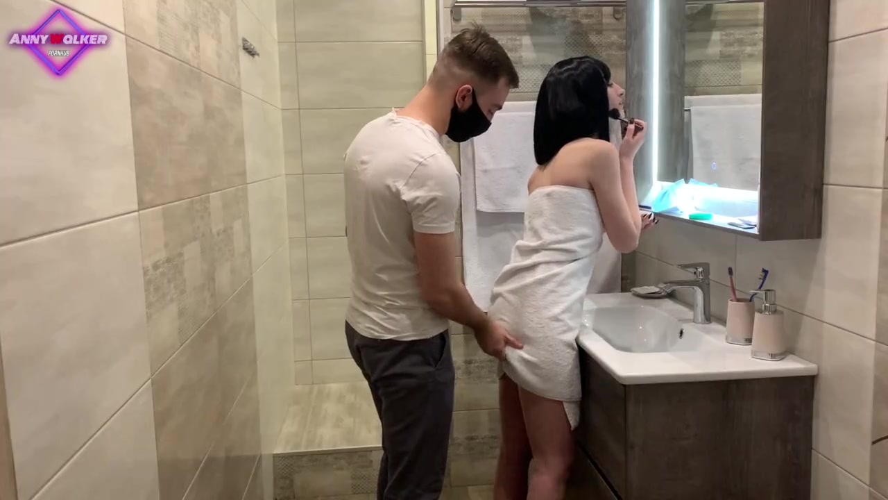 «Красотка приняла душ и начала наносить макияж, собираясь на работу. Она стояла в ванной комнате у зеркала обернутая в полотенце и выглядела в этот момент максимально сексуально. Парень снова не смог пройти мимо своей соблазнительной цыпочки, поэтому подошел к ней сзади и начал ласкать киску под полотенцем, действуя все интенсивнее и активнее, пока девушка не начала ему поддаваться и двигаться навстречу руке. Скоро она опустилась на колени и ротиком доставила удовольствие парню, прежде чем встать раком и насладиться горячей еблей.»