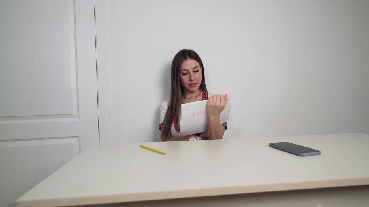 «Очаровательная русская студентка собирается поступать в художественный универ и ее просят показать насколько она хороша в рисовании. Телочка в знак своей пошлой фантазии нарисовала крепкий член, который кончает, давая ясно понять о грязных желаниях. В секунды перед ней возник жилистый хуй, на котором она отработает глубокий минет. Сосать с заглотом для нее пустяк, поэтому следом встала раком и показала свои большие сиськи, ведь так отжарить кралю будет куда приятнее. У куколки куда больший талант шикарно трахаться и миленько стонать, за что благодарный парень и кончил на пизду довольной русской телки.»