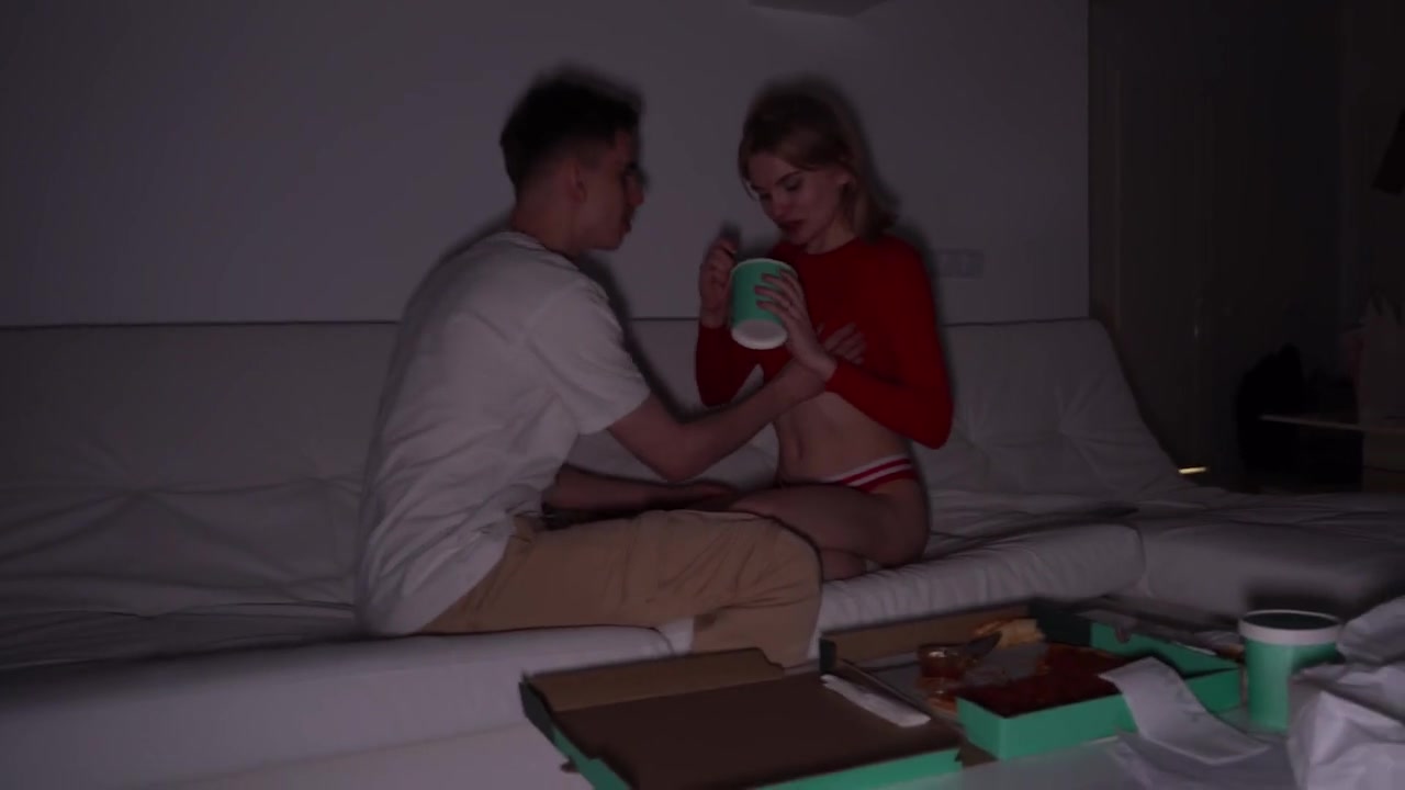 «Русская красавица кушает и наслаждается едой, но вот ее нетерпеливый парниша предлагает куколке сразу перейти к десерту. Он потрогал ее натуральные сиськи и достал хуй, который малышка с огромным желанием сосала. Это будет крутой глубокий минет, после которого подружка раздвинув ножки разрешает выебать розовую писькую на диване. Были стоны, удовольствие и дикое желание кончить у двоих. И вот едва шлюшка достигла оргазма, тут же на киску кончил и парень.»