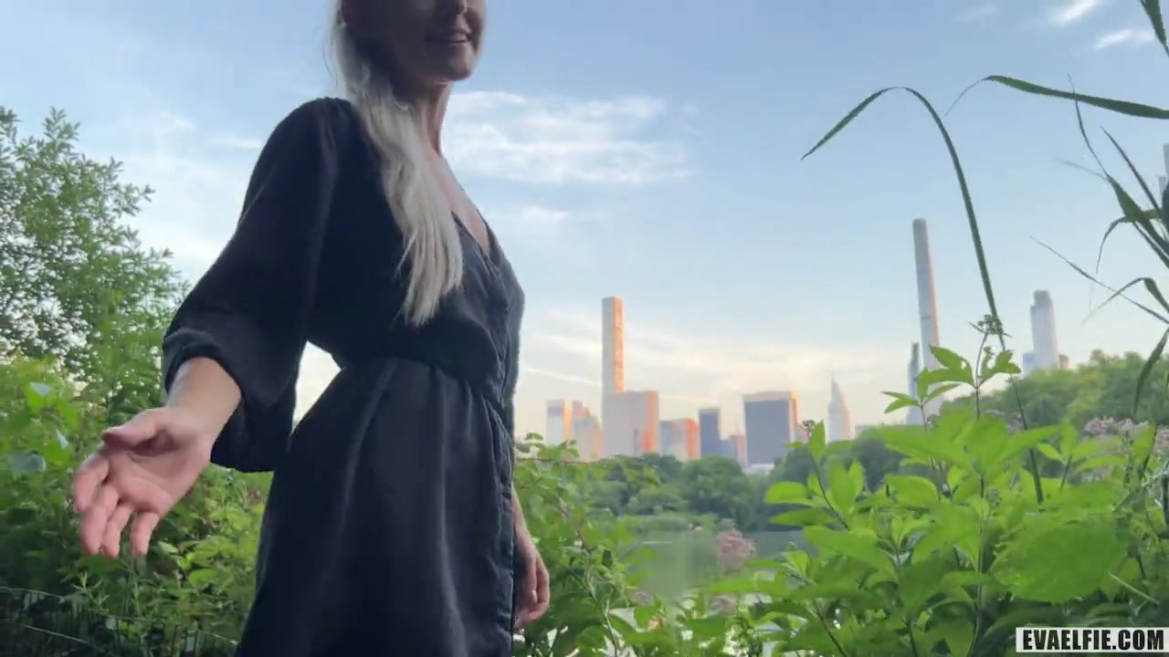 Распутная Eva Elfie берет толстый американский хуй в рот на улице, а дома горяче ебется