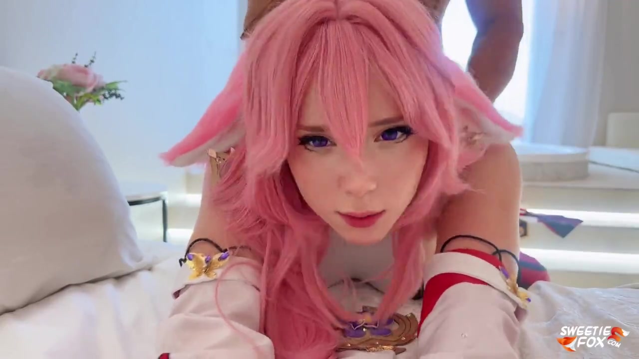 «Мастерица косплея Sweetie Fox готова обыграть свой новый сексуальный наряд с парнем. Милашка будет похотливой жрицей, которая даже не носит трусики, ведь всегда рассчитывает на жаркую порнушку. Показав бритую пизду крошка покорит самца и сразу встанет раком. Оттопырив большую жопу развратница покажет уже обе аппетитные дырочки, но крепкий мужской хуй предназначается лишь для ее писечки. Сзади качок и будет трахать сексапильную крошку, но помимо раком эта сучка с большими сиськами хороша и в позе наездницы. Немного наглости и негодница усадит пизду на лицо парня для оральных утех, после которых сделает глубокий минет и позволит кончить в рот не вынимая.»