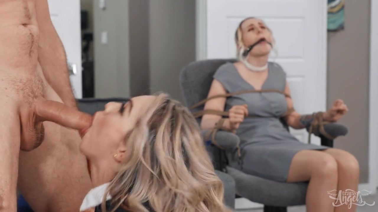 «Зрелая блондинка вернулась домой и никак не ожидала увидеть мужа, который так бодро ебет раком горничную. Но эта блондинка вовсе просто милашка блондинка, а похотливый транс с тугой анальной дыркой. Такой соблазн был чпокнуть сучку в жопу, что женатик конечно не устоял. Их анальный секс продолжился и после раскрытия, ведь дамочку связали и оставили в стороне смотреть за продолжением бурной порнушки в классную попку, но сперму изменщик все же приберег для жены и сочно кончил на лицо любимой.»