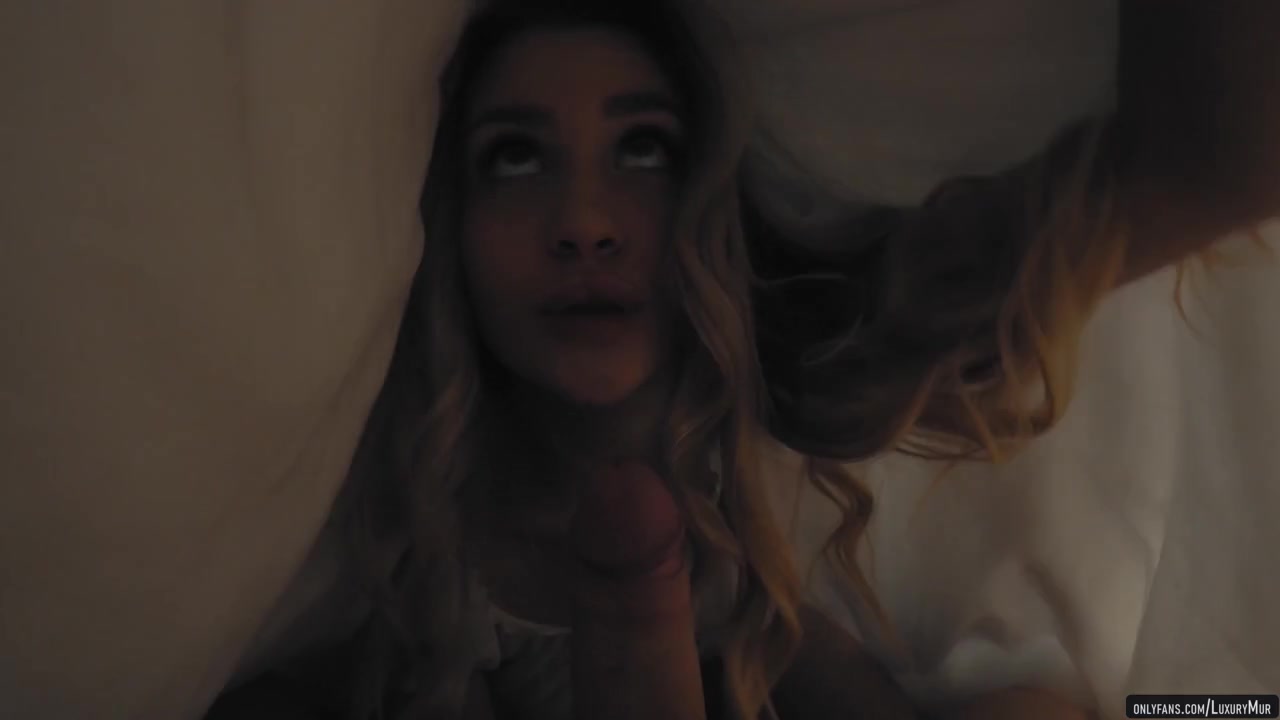 Красотка сосет под одеялом, мечтая оседлать большой крепкий хуй после в позе наездницы