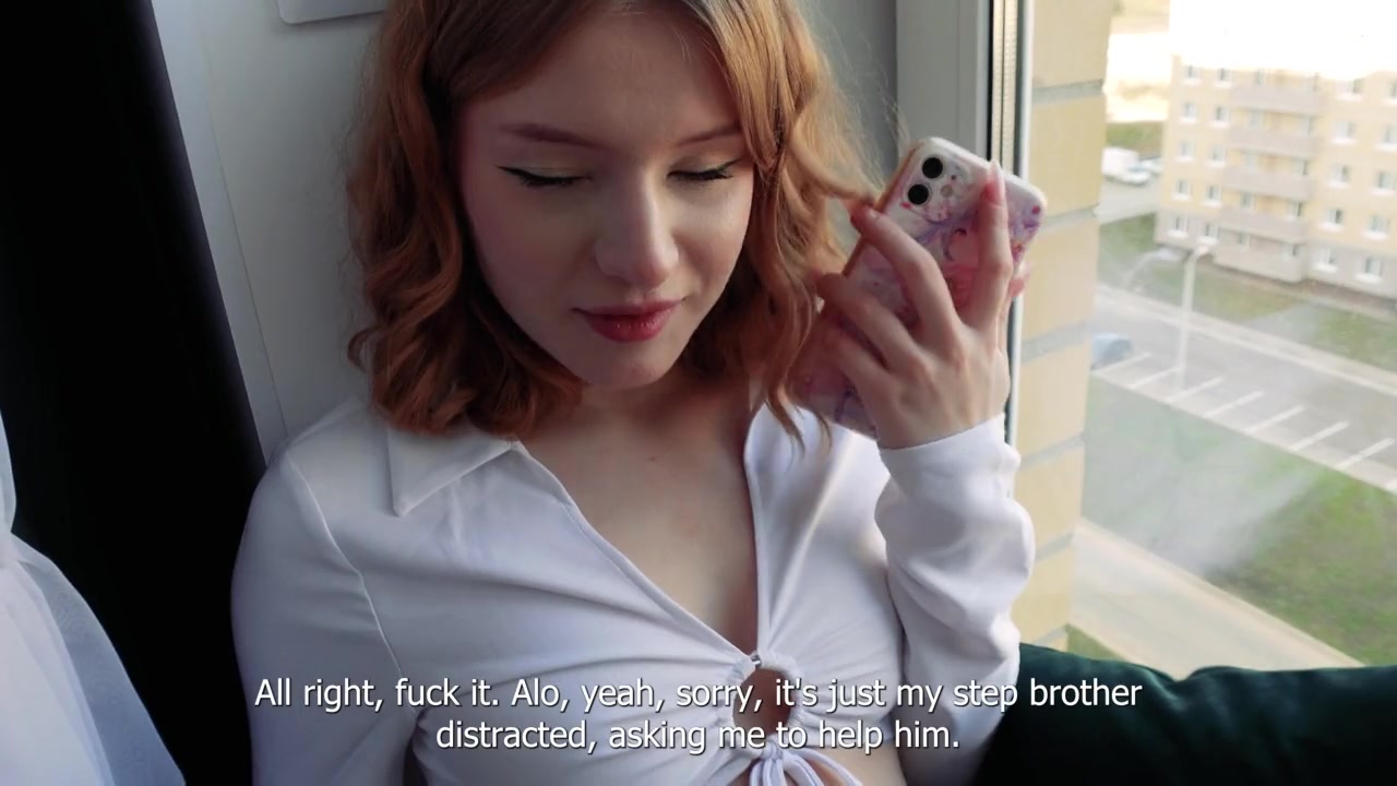 Брат приятно ебет сестру у окна пока та мило болтает по телефону с бойфрендом