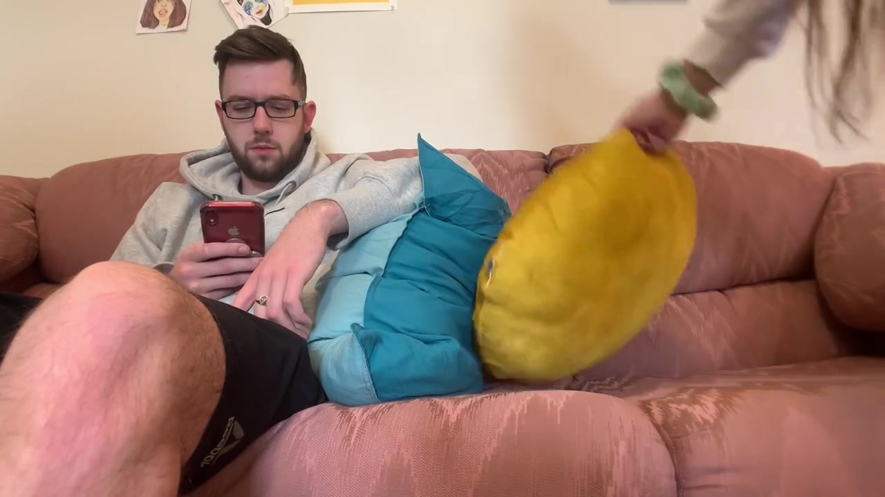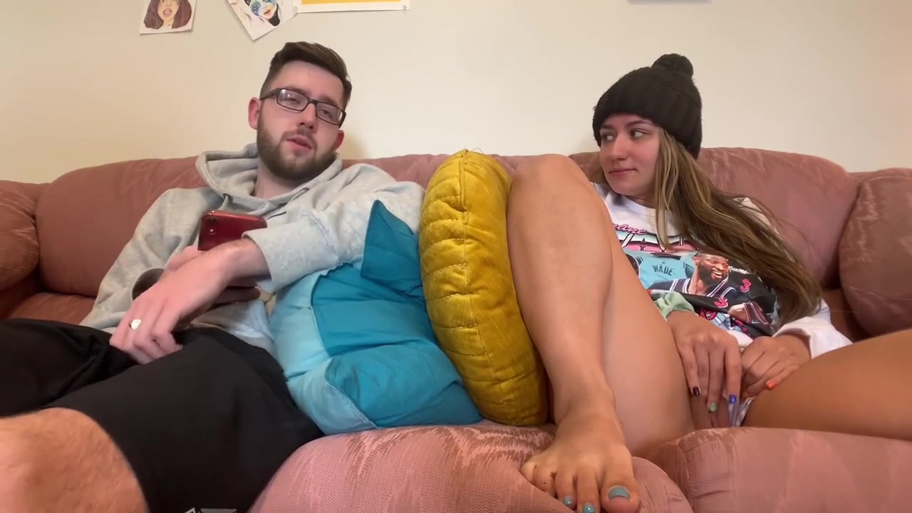 «Чувак смотрел телевизор, но к нему подсела подружка, которая решила, что она незаметная ниньзя и может легко подрочить и не быть замеченной. Ей все же удалось немного поиграть пальцами с бритой киской, и даже возбудить ее. Но чувак вскоре засек эту наглую мастурбацию и просто заставил сучку раздеться. Теперь ее щель во власти чувака, который вылижет дырку, а затем засадит внутрь уже крепкий член. Его намерения быстро и грубо трахнуть кралю с большими обвисшими сиськами. А главное утолить ее потребности в сперме и попытаться кончить в рот, но весь камшот попал телке лишь на лицо.»