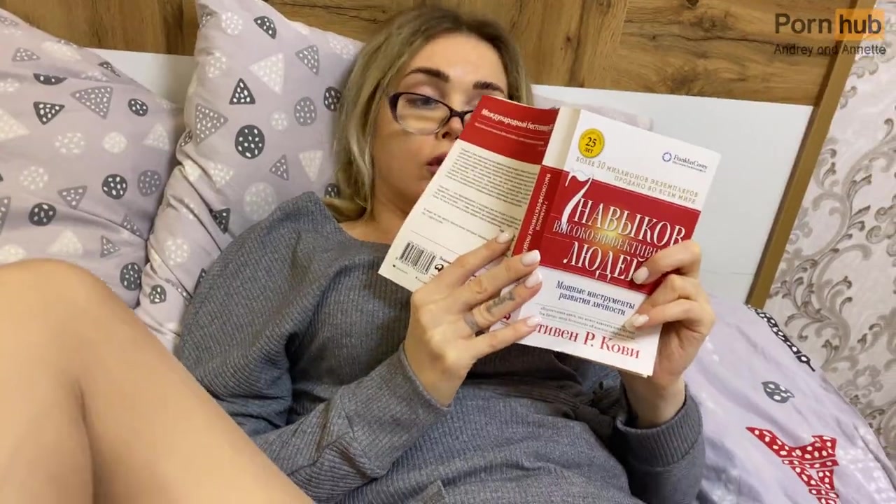 «Очень занятая чтением русская милфа пытается всячески отбиться от своего похотливого ебаря. У блондинки куча работы и нет времени для секса. Чувак продолжает настаивать, пока ему не удается снять колготки с очень сочной мамки. Теперь розовая киска в его власти и он приятно дрочит дамочке пизду пальцами. Наконец она возбудится, и задрав ножки даст засадить в дырочку член. Всего пару минут она молчала, а после стоны и дикий кайф от ебли взял верх. Раком зрелка оголит большие сиськи, и будет трясти буферами пока в конце концов кремпай не наполнит сучку, а сперма будет вытекать.»