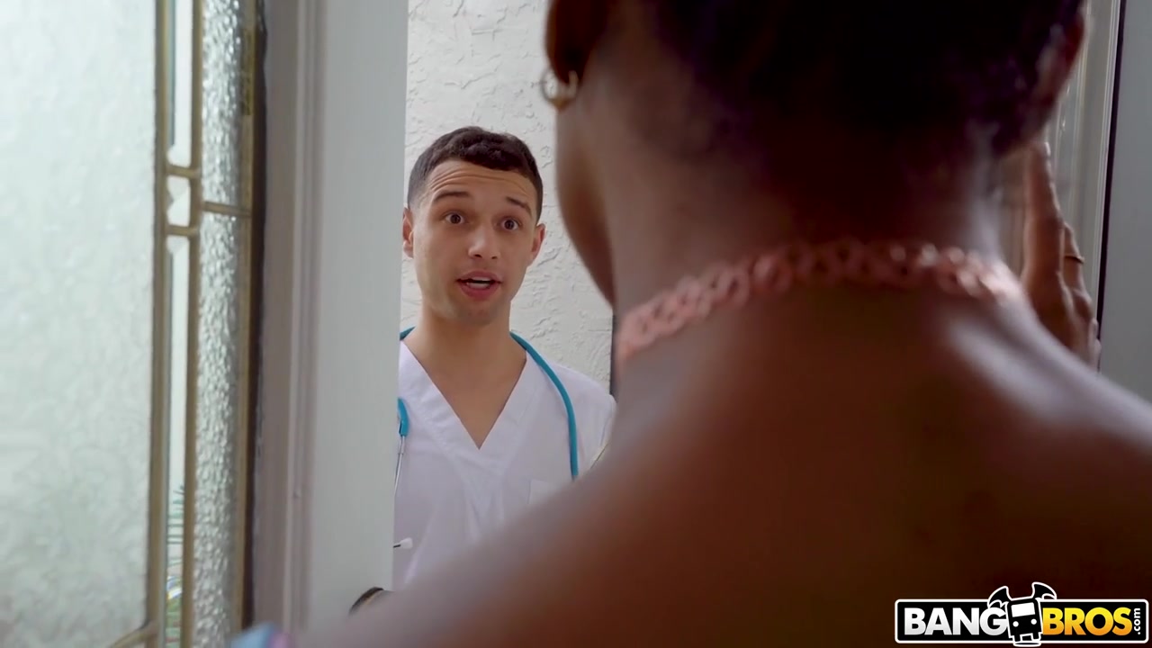 Черная сучка с большими сиськами попала к доктору на прием и на член