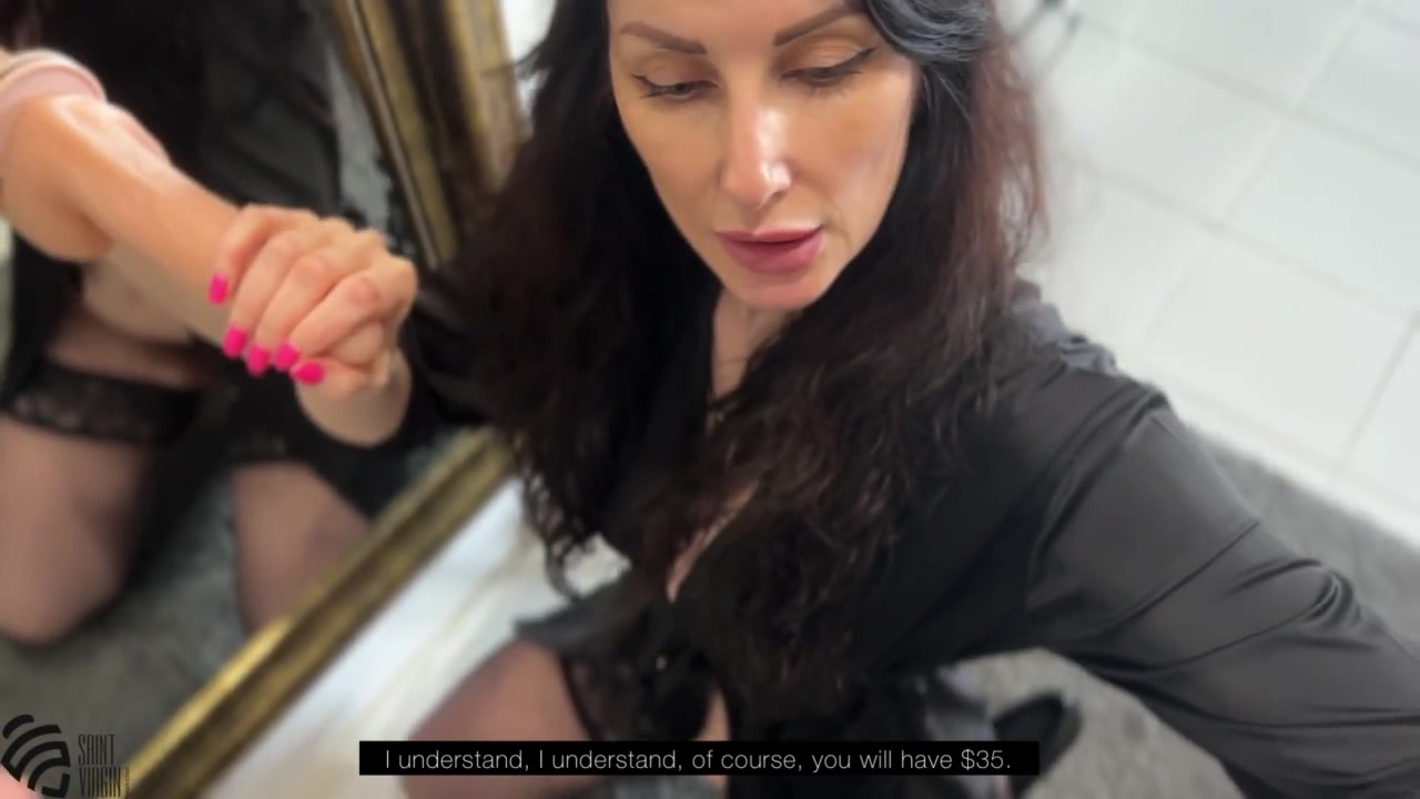 «Эффектная русская зрелка встречает курьера, который принес ей ее заказ. Красотке хватает, чтобы рассчитаться за посылку, но не за доставку, а потому мамаша ищет как бы отработать. Но чувак сам придумывает решение, ведь настолько сексапильная брюнета в чулках и красивых трусиках способна на многое. Достав дилдо мамка показывает свое умение сосать, но лучше ей отработать с реальным хуем. Дамочка ловко обслуживает сразу парня и секс игрушку, доказывая огромный опыт шлюшки и безумное желание, чтобы ей кончили на лицо.»