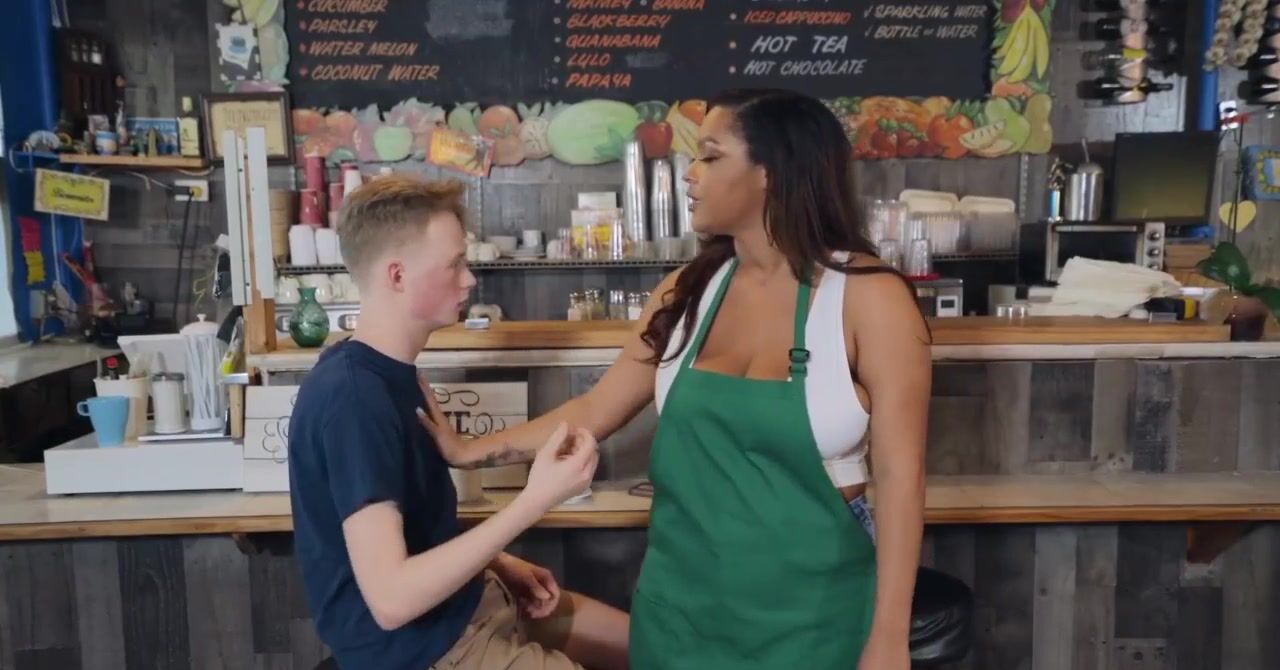 Чернокожая девушка бариста отвлекается на секс с белым парнем